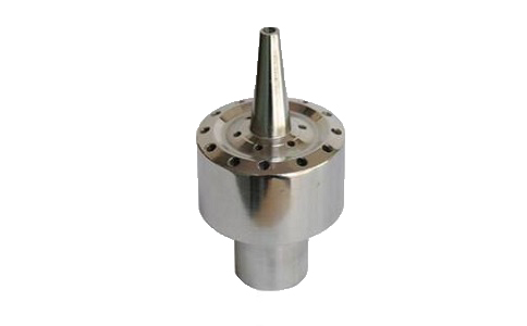 由中心直上合兩圈不同層次及角度圓孔組成,噴射形成中心水柱和兩層外向拋射的拋物線狀水花,該噴泉噴頭可以獨立使用也可以組合其他噴泉噴頭使用,形成多種噴射形狀