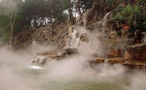 戶外空間環(huán)境降溫系統(tǒng),可以局部地控制大環(huán)境的溫度。人造霧降溫系統(tǒng)散發(fā)到空氣中的水微粒,在汽化的過(guò)程中要吸收大量周圍環(huán)境中的熱量,蒸發(fā)冷卻從而降低周圍環(huán)境溫度的原理