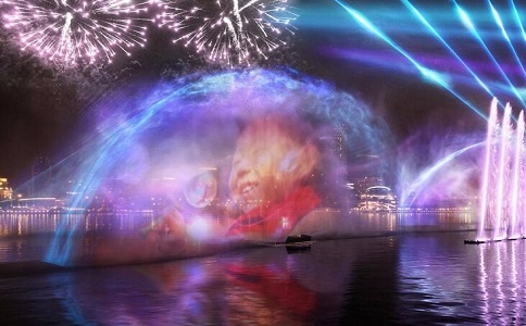 水幕電影技術(shù)是一束光束照射在水面,展示著較強(qiáng)立體電影效果的一種多媒體技術(shù)。水幕電影產(chǎn)生于上個(gè)世紀(jì)80年代后期,但其早期僅僅出現(xiàn)在法國(guó)
